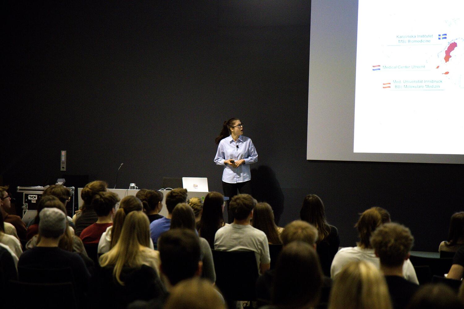 Mit dem Hybridvortrag „I’ve got potential! Stammzellen und ihr Nutzen in der Medizin und Forschung“, an dem mehr als 250 Zuhörer:innen teilnahmen, eröffnete Theresa Sommer den Aktionstag. Darin erklärte die Molekularbiologin, welch wichtige Rolle Stammzellen in der Forschung einnehmen, und gab Einblicke in ihre eigene Forschungsarbeit.