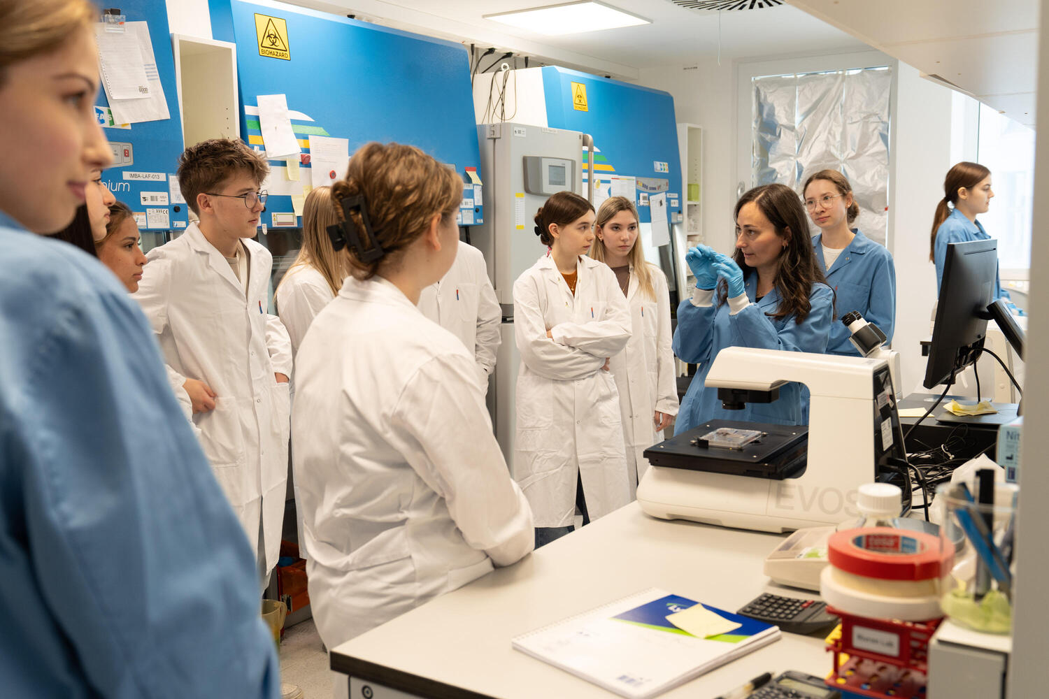 Anschließend erhielten drei ausgewählte Schulklassen im Rahmen einer Führung durch die Forschungslabore am IMBA sowie die Tissue Culture Support Unit, die Möglichkeit in den Forschungsalltag mit Stammzellen einzutauchen. Im Workshop „Die Bioethikkommission tagt“ diskutierten die Teilnehmer:innen gemeinsam mit Open Science und der Abteilung für Ethics and Biosafety des IMBAs aktuelle und gesellschaftlich relevante Fragen rund um die Verwendung von Stammzellen.
