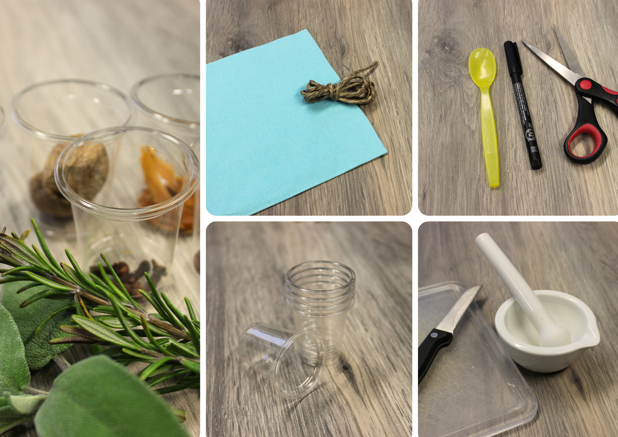 - mindestens fünf duftende Gewürze, z.B. Zimt, Gewürznelken, Sternanis, Kardamom, Kümmel, Piment oder Rosmarin