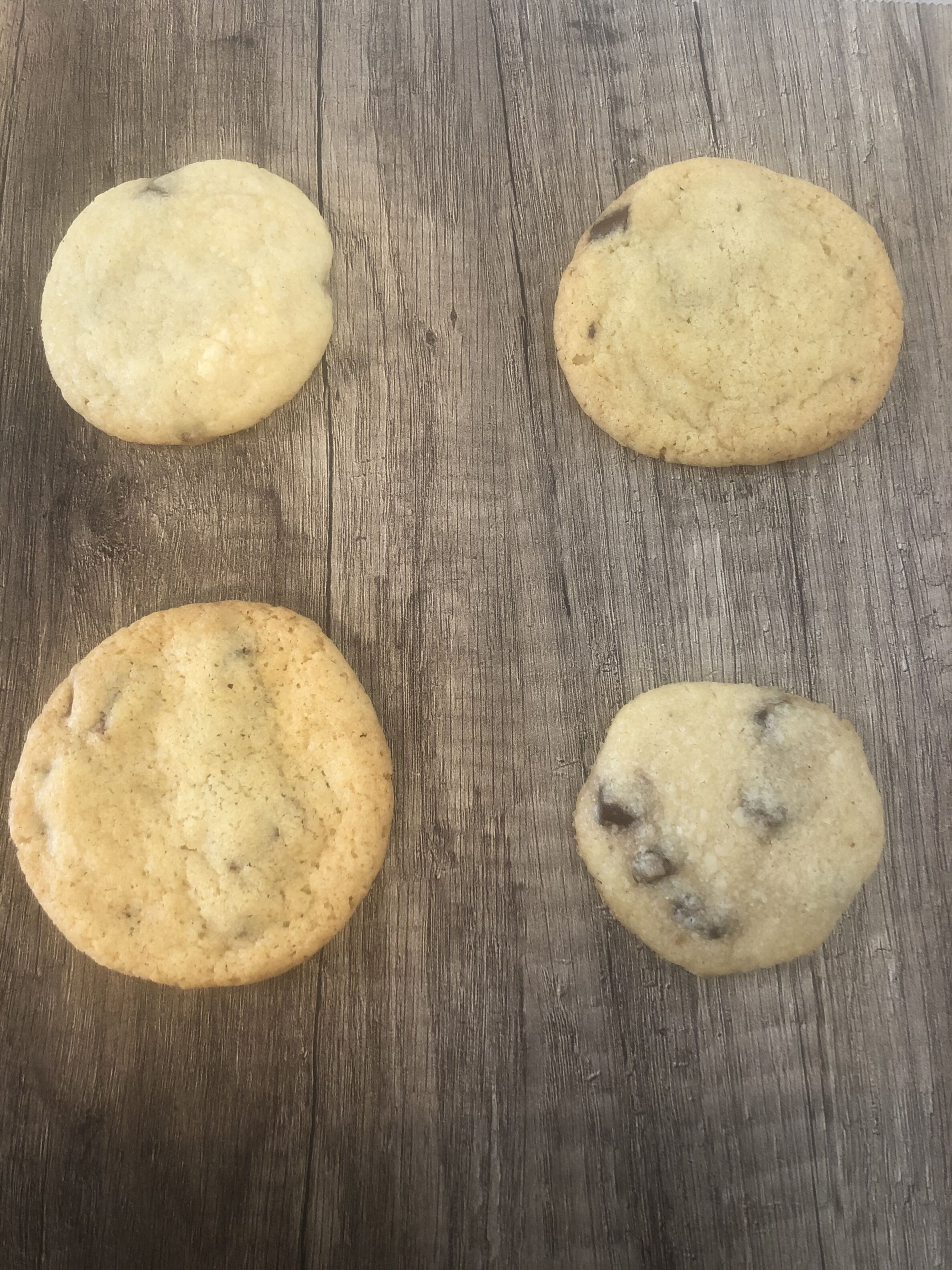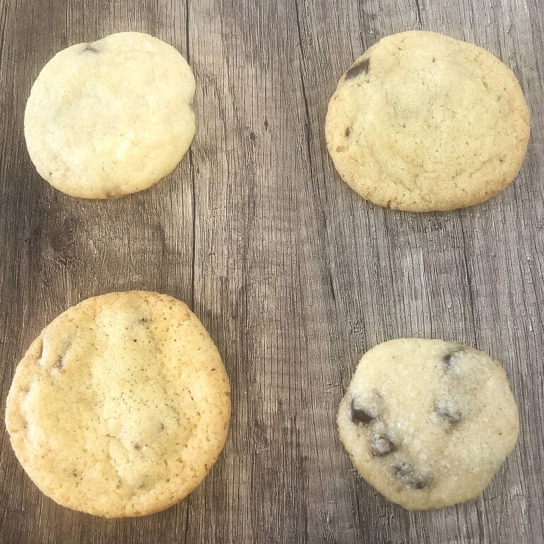 Nimm es beim Backen ganz genau: Wenn du den Teig und die Mehlmischung aufteilst, solltest du am besten alles abwiegen. Auch deine rohen Kekse sollten genau das gleiche Gewicht haben. Du kannst anstelle der Backtriebmittel auch andere Zutaten vergleichen: Was passiert z.B., wenn du keine weiche, sondern geschmolzene Butter verwendest?